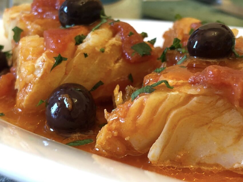 Add the boiled stockfish to the sauce and gently mix to coat the fish.