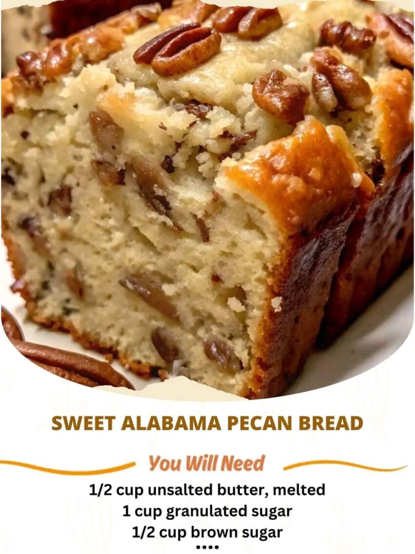 Sweet Alabama Pecan Bread is a warm, nutty, and sweet quick bread that’s perfect for breakfast, dessert, or a snack with your afternoon tea or coffee. The pecans add crunch and a lovely nutty flavor, while the sweetness comes from a mix of brown sugar and a touch of cinnamon. It’s a delicious Southern treat that will fill your kitchen with cozy aromas.