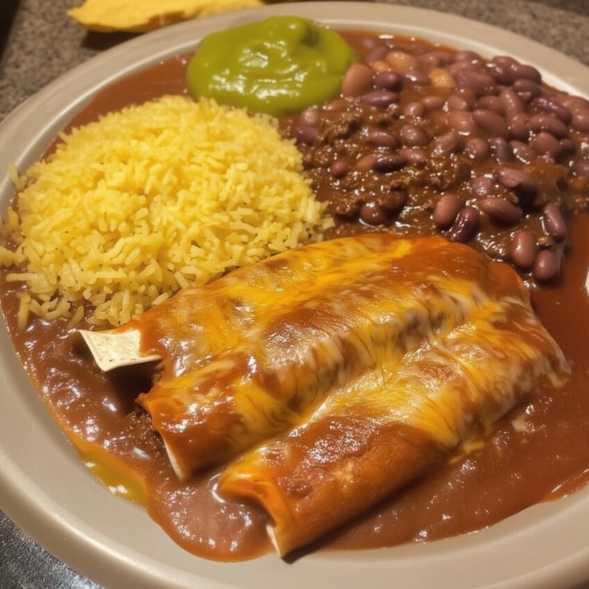 Two Cheese Enchiladas with Chile Con Carne Sauce