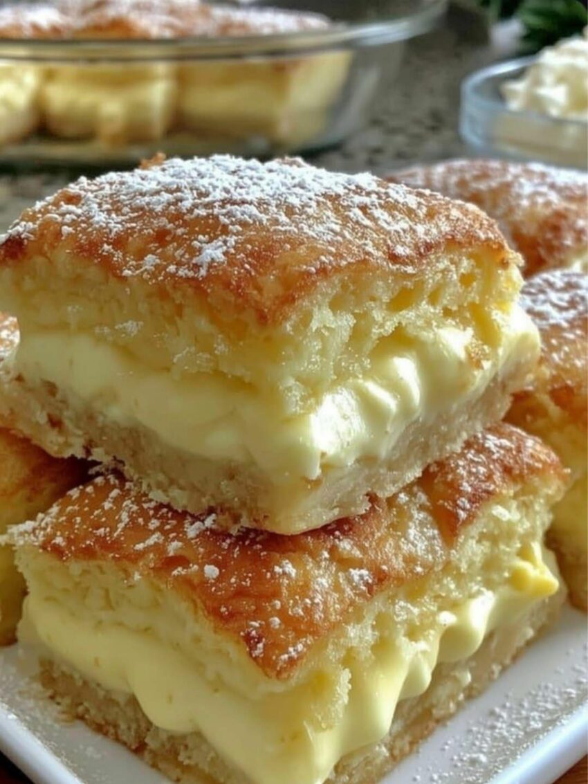You’re going to love these classic Vanilla Custard Cream Squares โ light, creamy, and elegant! Also known in some European cuisines as Krempita or Napoleonka, these delicious layered squares feature rich vanilla custard sandwiched between flaky puff pastry sheets, topped with powdered sugar. Theyโre simple to make, but taste like a bakery masterpiece!